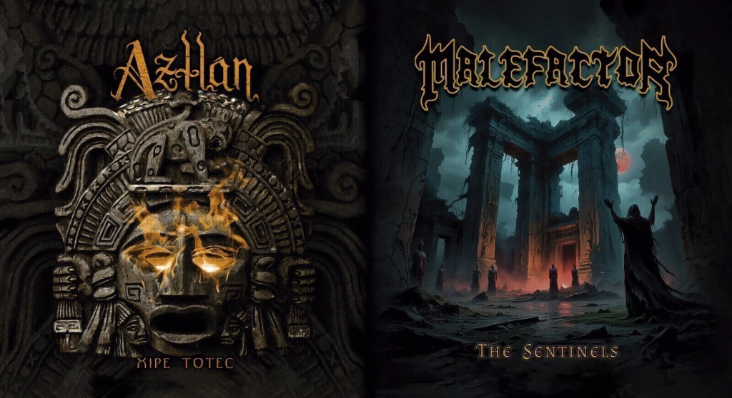 MALEFACTOR e AZTLÁN unem forças para entregar um manifesto sonoro das sombras, em formato Split vinil com seus EP’s “The Sentinels” e “Xipe Totec”